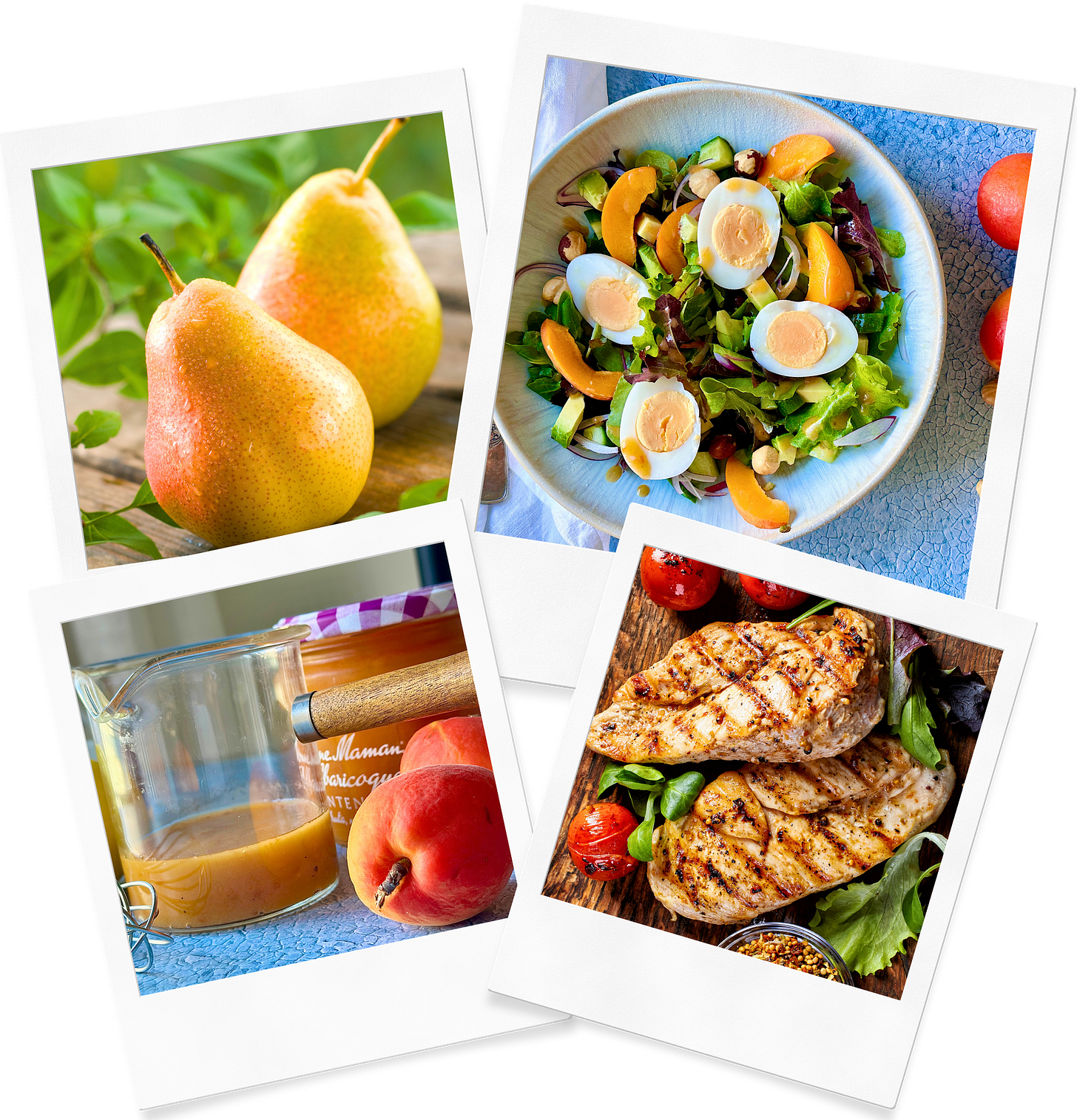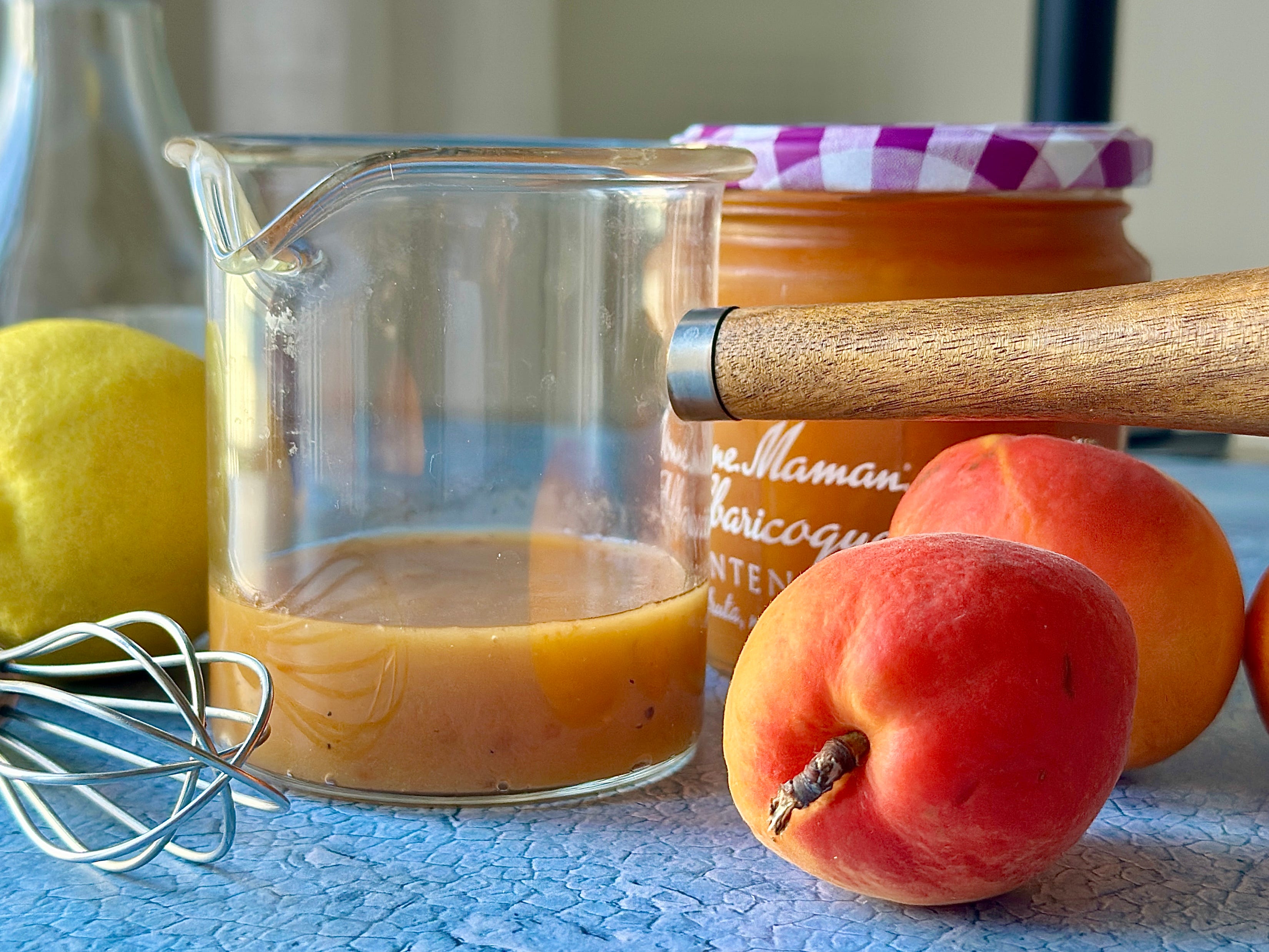 Today’s vinaigrette is a 5-minute recipe I call ”indispensable”. No homemade jam? No problem. Low/no-sugar options of store bought jams will fill in just fine. The French brand, Bonne Maman, has a particularly nice fruit-dense Intense version if you can source it.
