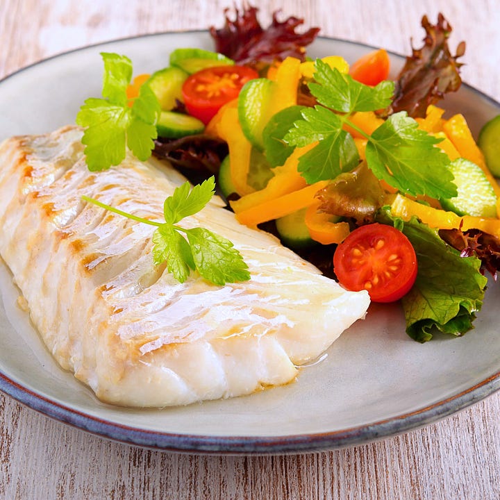 If you’re struggling to meet the Mediterranean diet guidelines for including fish 3 times a week, straight-up white fish, like cod or halibut, is a very easy, very affordable answer.