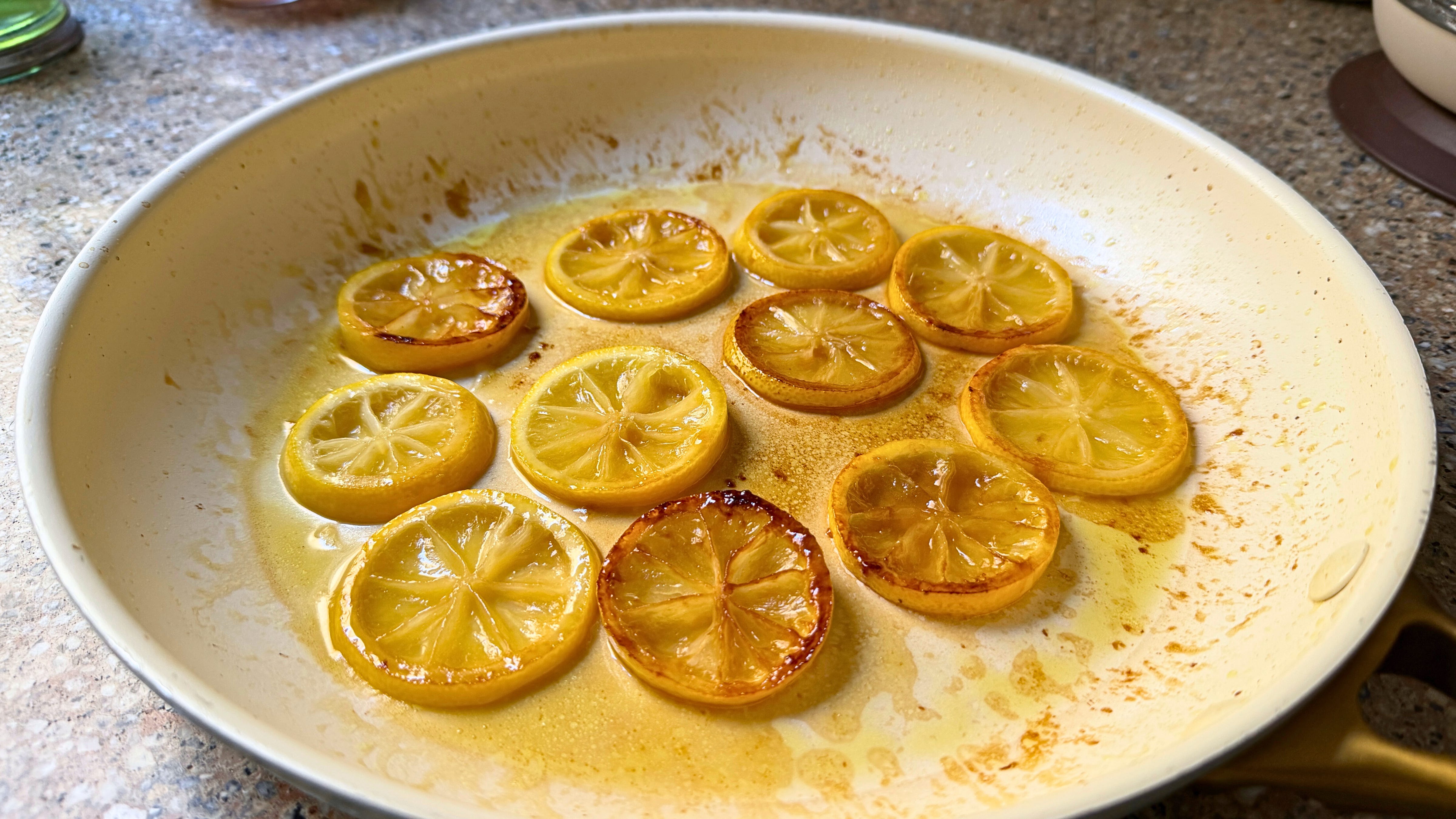 The mild white fish may be the centerpiece, but the caramelized lemon slices really are worth the few minutes it takes to burnish them to a tangy but sweet finish. And once you taste them, you’ll understand why these lemons are often a flavor boost in many Mediterranean diet dishes.