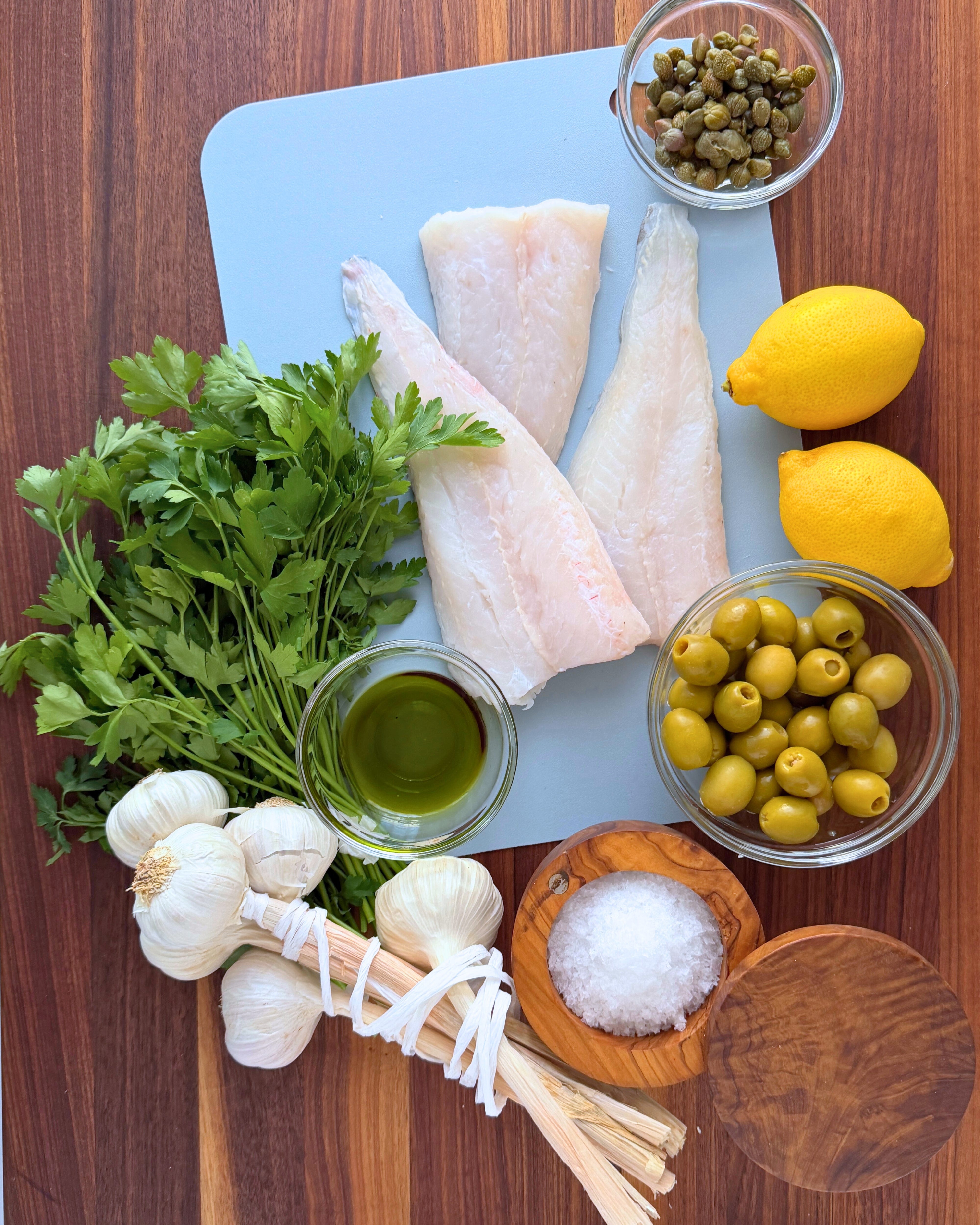 And all it takes are classic, simple Mediterranean flavor combinations of herby greens, grassy olive oil, spicy garlic, citrusy lemons, tangy capers, and olives. As an extra hidden benefit, the olives I used were the widely available ones in Spain stuffed with anchovies to provide another little omega-3 benefit.
