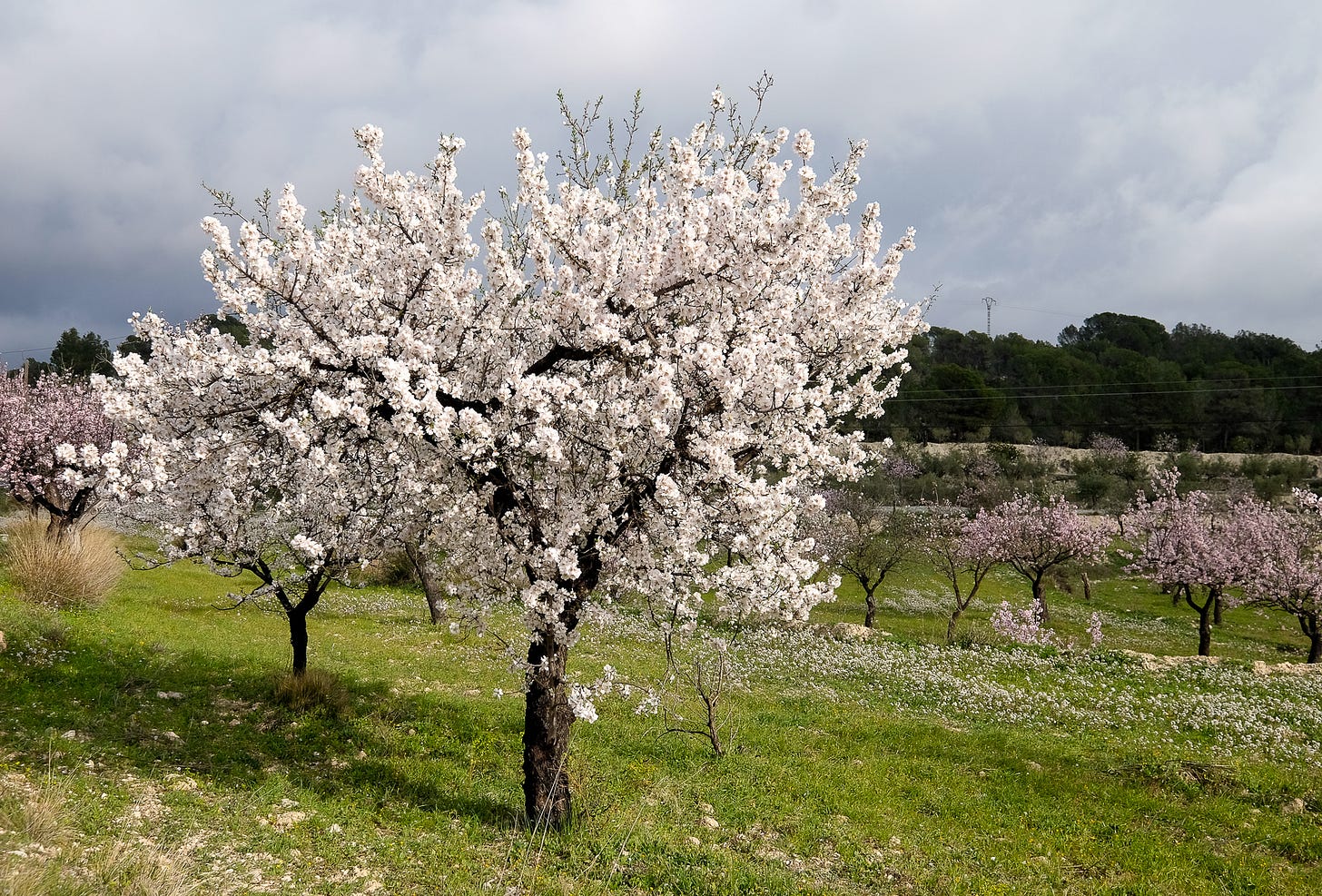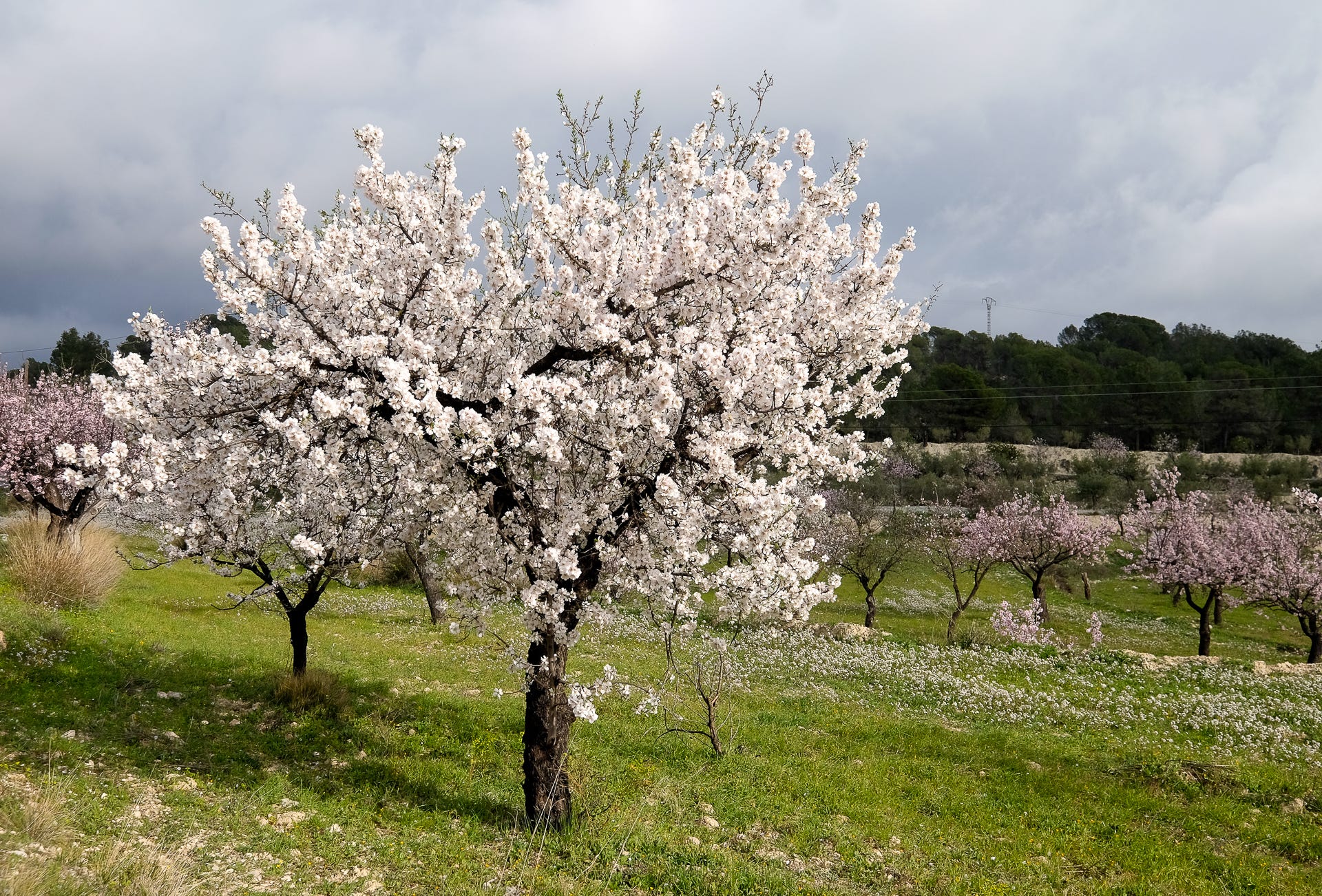 Right now, a sure sign of spring is the blanket of white and pink that gently settles like a tufted bedspread over the hills. Everyone here knows it’s a spectacular signal of almond blossom time and the fruit that will follow in the late summer.