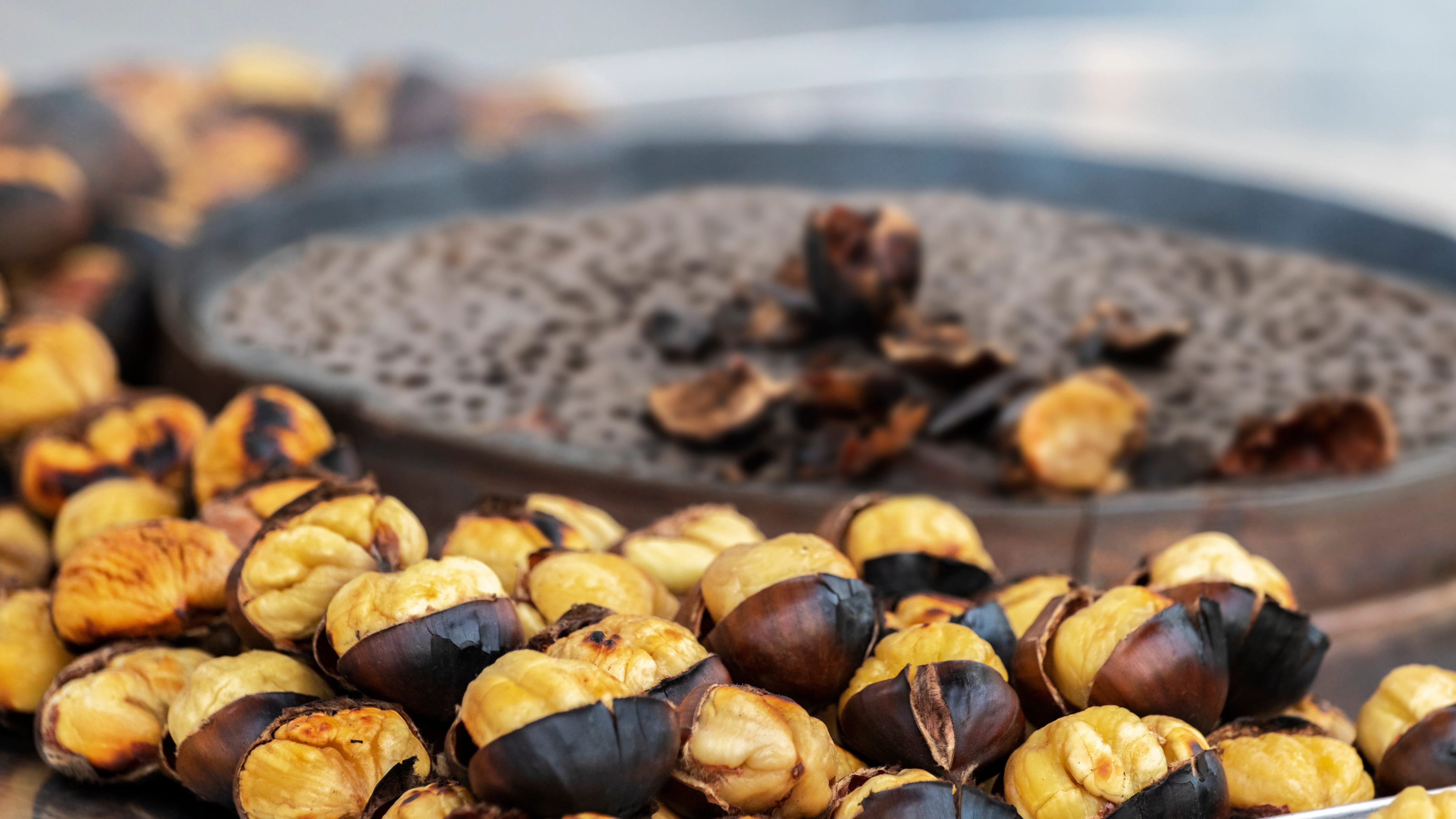 But one fun aspect to shopping for the right ingredients is that maybe you’ll come along a pop-up street vendor roasting fresh chestnuts like I did yesterday. It was my inspiration to suggest that some roasted chestnuts and a clementine would make a perfect midday snack.