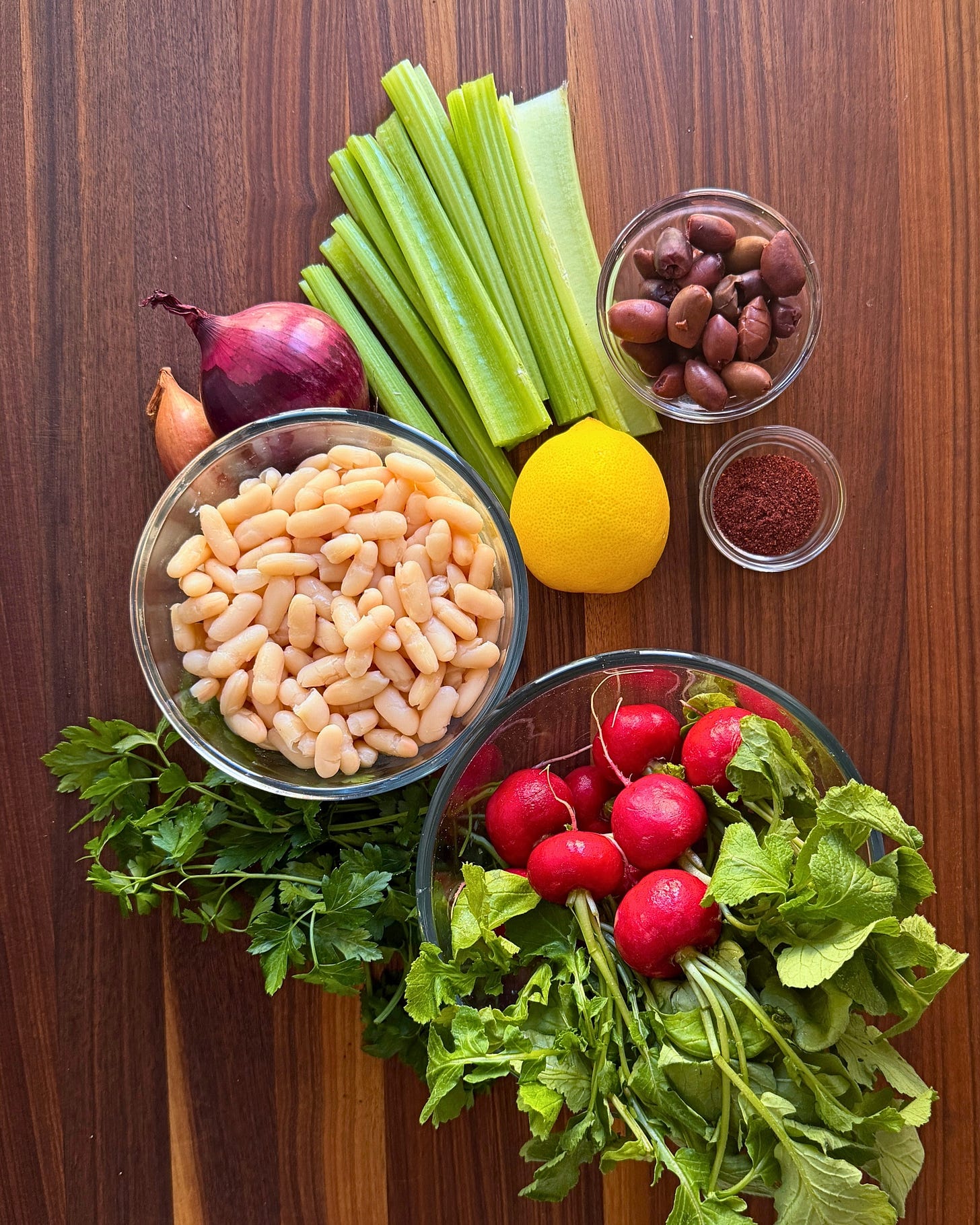 Radishes. Celery. Parsley. Red onion.
