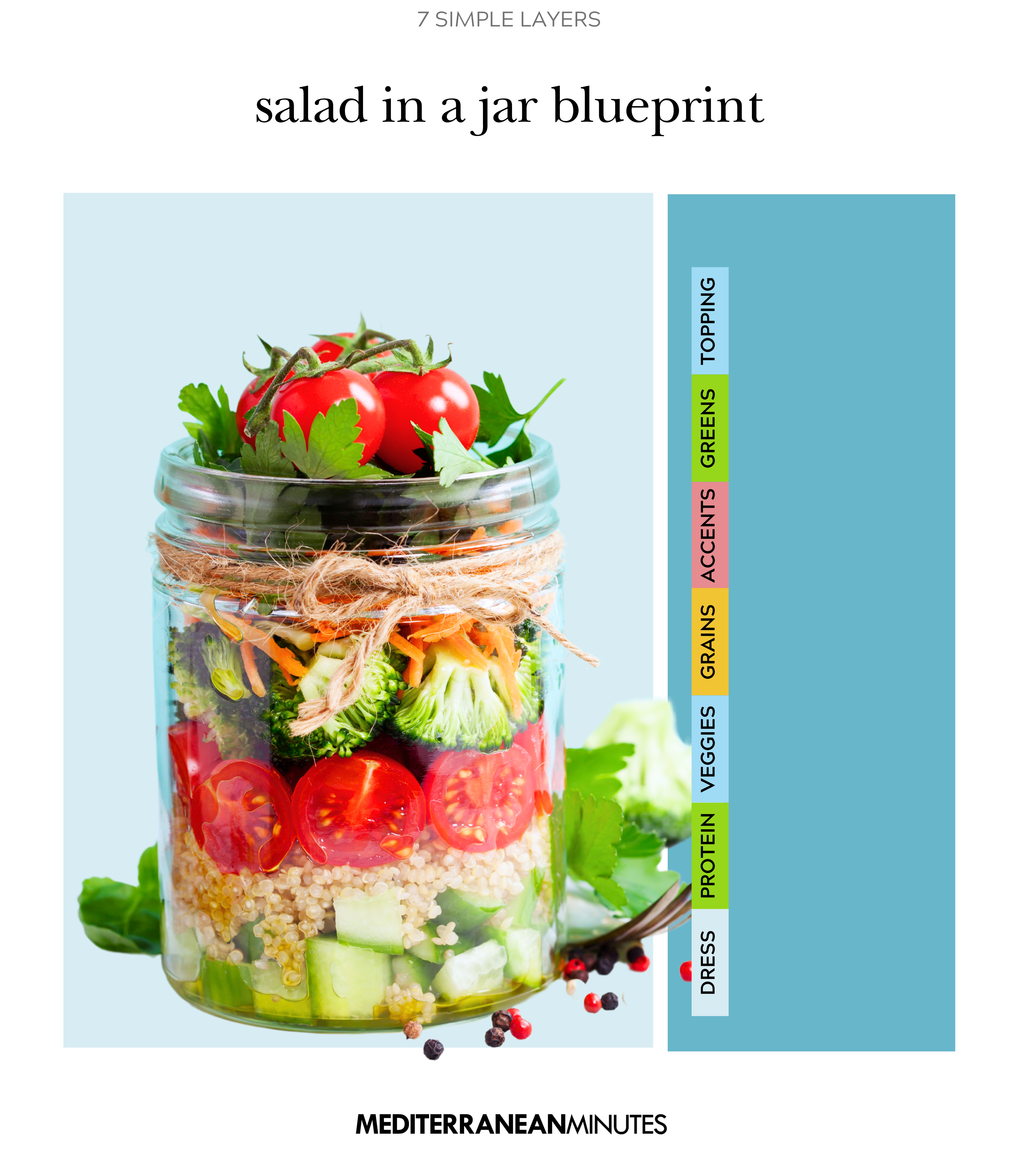 Now, normally you’d find some bonus recipes in the menu PDF besides the meal plan I promised you but this week, I want to offer a reminder that there are plenty of low-stress meals in between the parties to keep the holiday healthy and my Salad-in-a-Jar blueprint is one of the ways I manage it myself that you might like too. It’s a little mix and match system coupled with my favorite recipe for vinaigrette.