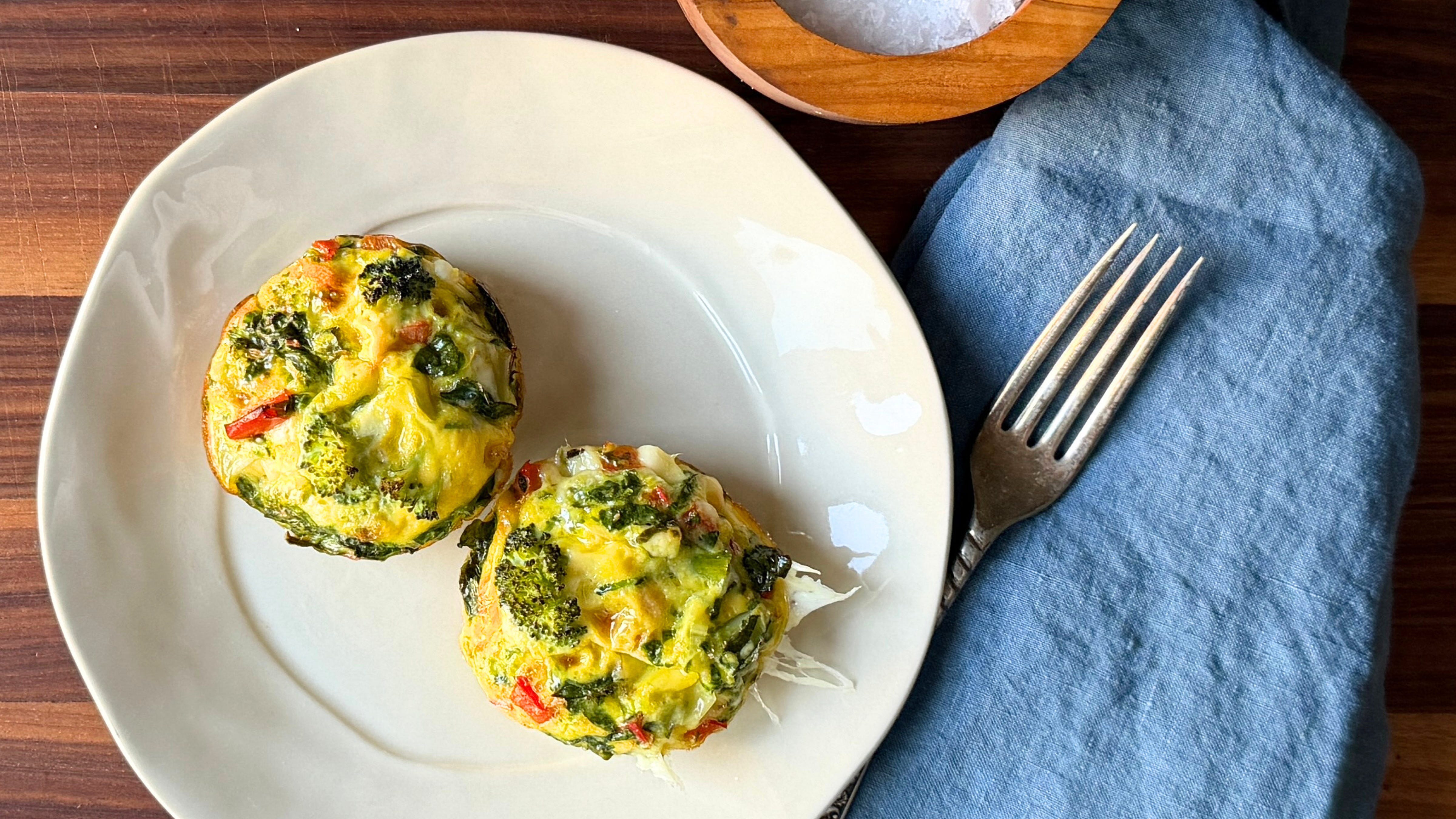 And if you batch cook these muffins like I did, you can enjoy them later in the week for a light lunch or dinner when they spend just 5-7 minutes in the oven or the air-fryer.