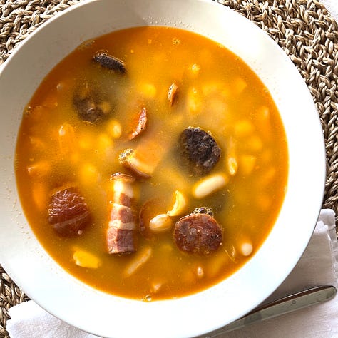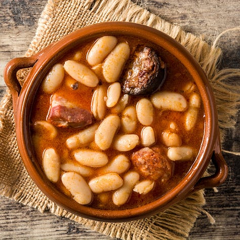 Third, of course, classic syrupy sweet pork & beans is a favorite combination in the US, whether it’s homemade or comes from a can. In Spain, there’s another pork & beans favorite called Fabada Asturiana. I’ve made a video about it and the recipe can be found right here in the archives. But today’s pork and beans is one of the healthiest and fastest ways to enjoy this perfect pairing.