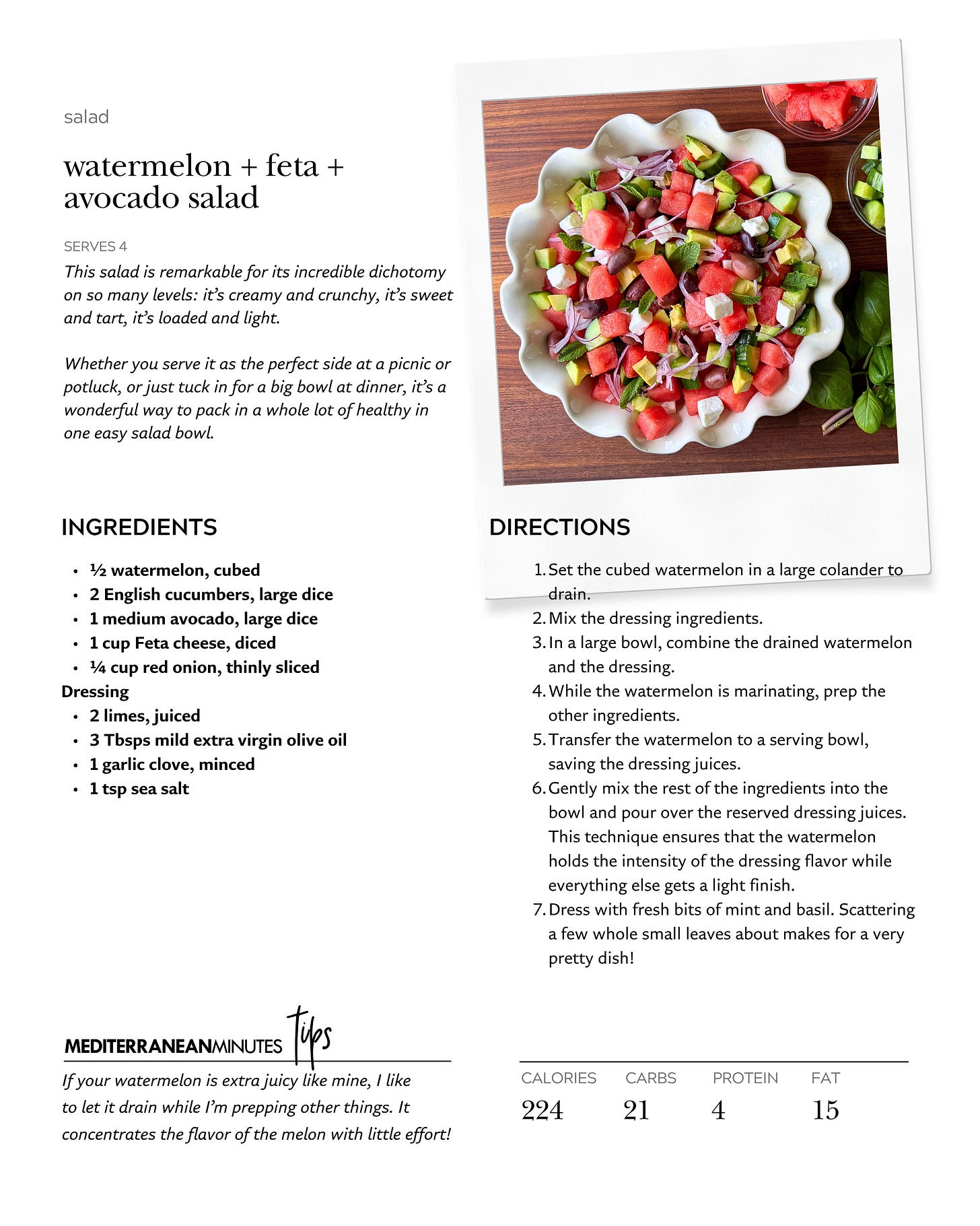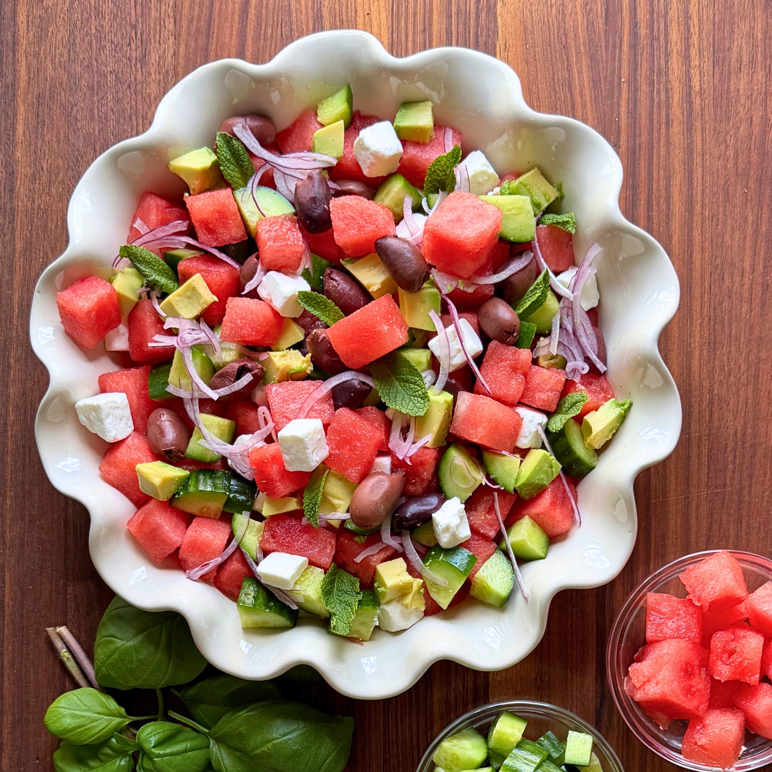 mediterranean diet: watermelon + feta + avocado salad