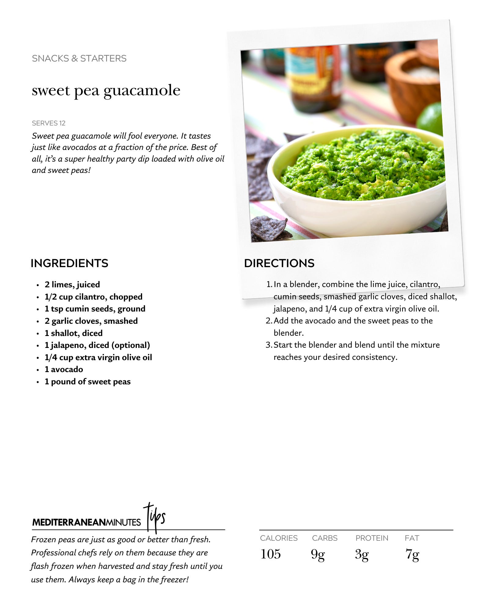 Sweet pea guacamole will fool everyone. It tastes just like avocados at a fraction of the price and, best of all, it's a super healthy party dip loaded with olive oil and sweet peas!