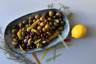 warm spicy mixed olives